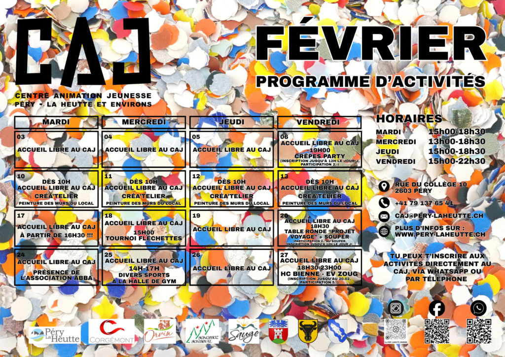 Le Centre d’Animation Jeunesse (CAJ) regroupe sept communes membres : Sonceboz, Corgémont, Cortébert, Romont, Orvin, Sauge (composée de Frinvillier, Plagne et Vauffelin) , Evilard et bien sûr Péry-la Heutte elle-même étant la commune siège.