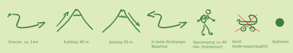 Die acht thematisch voneinander unabhängigen Stationen laden dazu ein, die Vielfalt der lokalen Biodiversität entlang des Waldwegs zu erkunden.