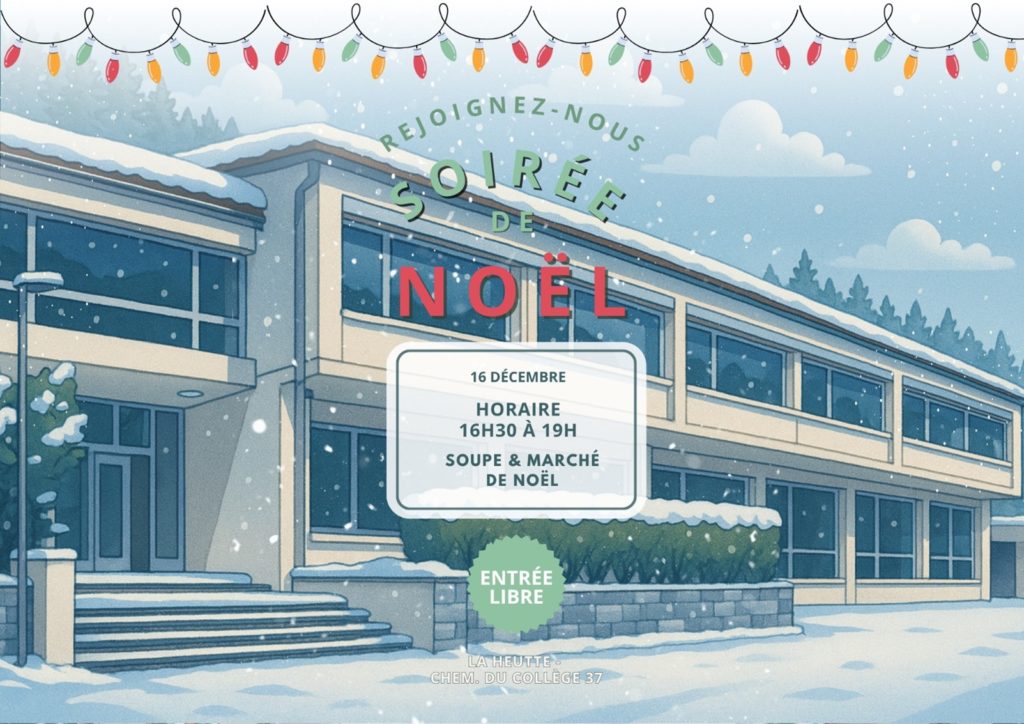 Le 16 décembre, l’ensemble de la population est cordialement invité à découvrir les locaux ainsi que l’équipe de la fondation You Count, installée à l’école de La Heutte depuis cet été. Dès 16h30, l’institution vous accueille pour présenter son mode de fonctionnement, ses espaces fraîchement aménagés et son équipe dynamique. À 18h, les élèves proposeront quelques chants et représentations de Noël dans la salle de gymnastique. Afin de partager un moment chaleureux, une soupe vous sera offerte, et un marché de Noël sera également proposé dans le cadre des Fenêtres de l’Avent de la commune. Jusqu’au 24 décembre, la convivialité et l’esprit de fête animeront chaque soir les rues de notre village. CM