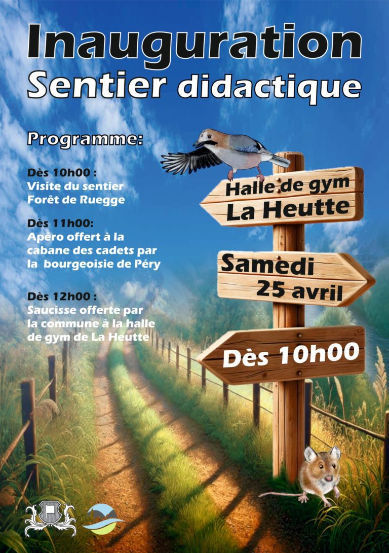 La Municipalité de Péry-La Heutte et la Bourgeoisie de Péry ont le plaisir d’annoncer l’inauguration officielle du nouveau sentier didactique "Biodiversité" , aménagé dans le secteur de Ruegge, entre Péry et La Heutte. Ce projet met en valeur les richesses naturelles de notre région à travers un parcours pédagogique accessible à toutes et tous.